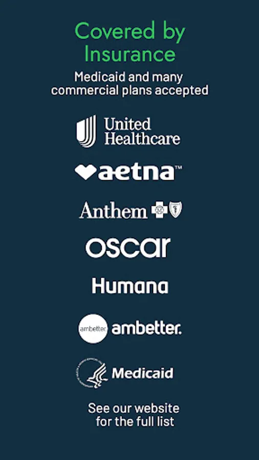 We accept many insurance plans including medicaid, which is fully covered for members. Please see our website for the full list of plans we accept. There are no subscription fees or ads.