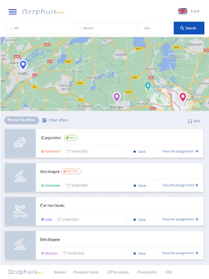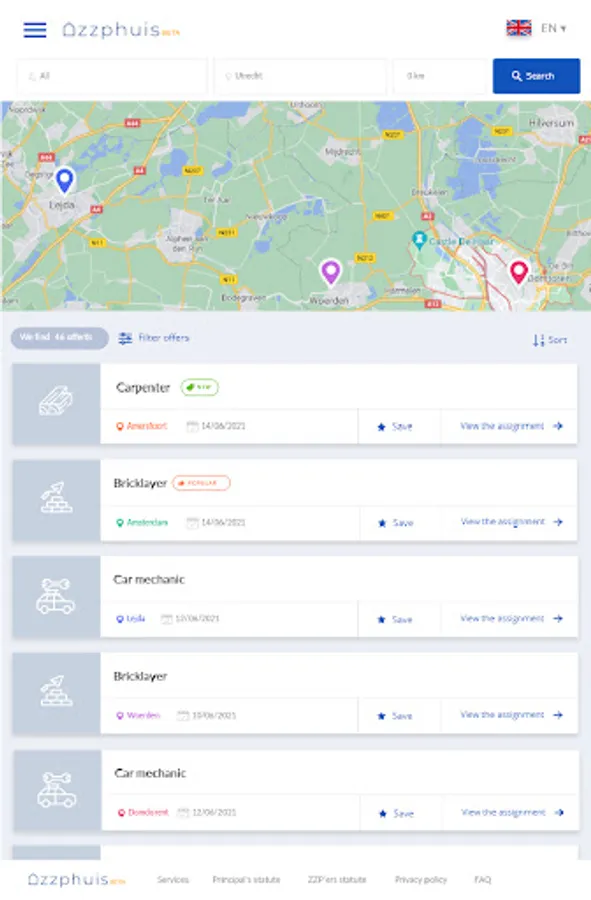 ZZPhuis is an automated platform that connects the self-employed (ZZP) with construction companies. Thanks to ZZPhuis, cooperation between you is simple and safe. ZZPhuis.nl is a virtual 'order exchange'.