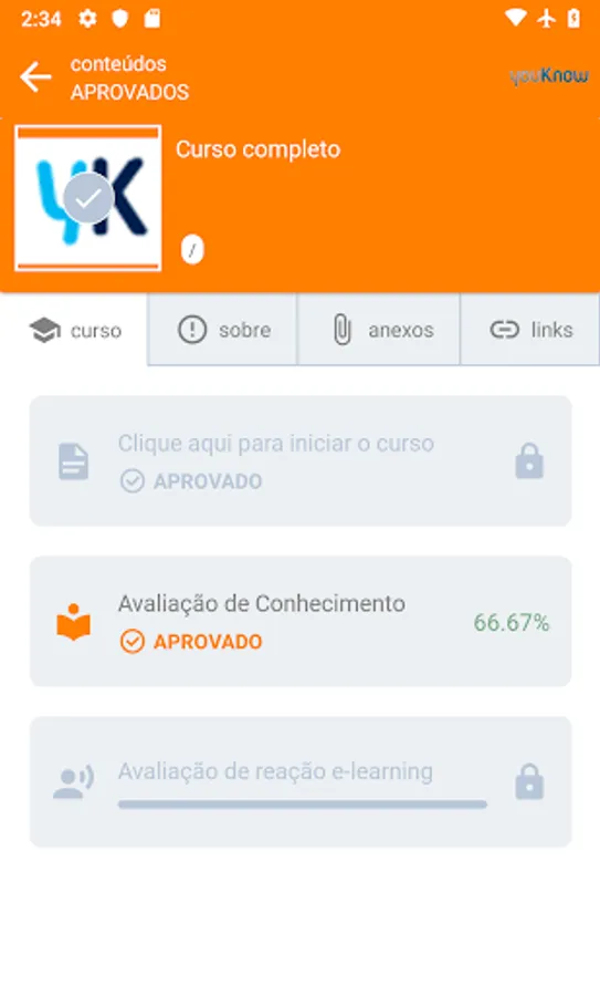 - Access courses which is registered and that the company authorized to perform via yK App, navigating status of the course: not started, in progress, completed or incomplete;