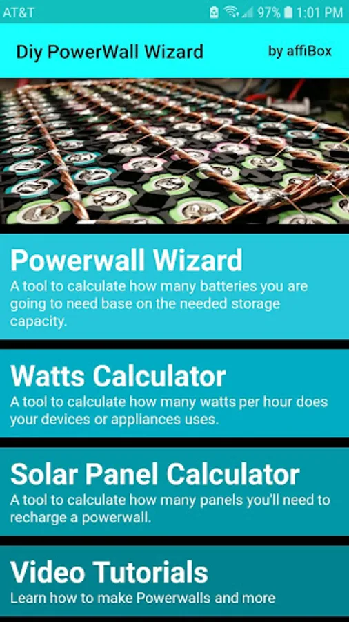 The Diy Powerwall Wizard app was designed and created to be used as a tool to help you build your own off-grid projects.