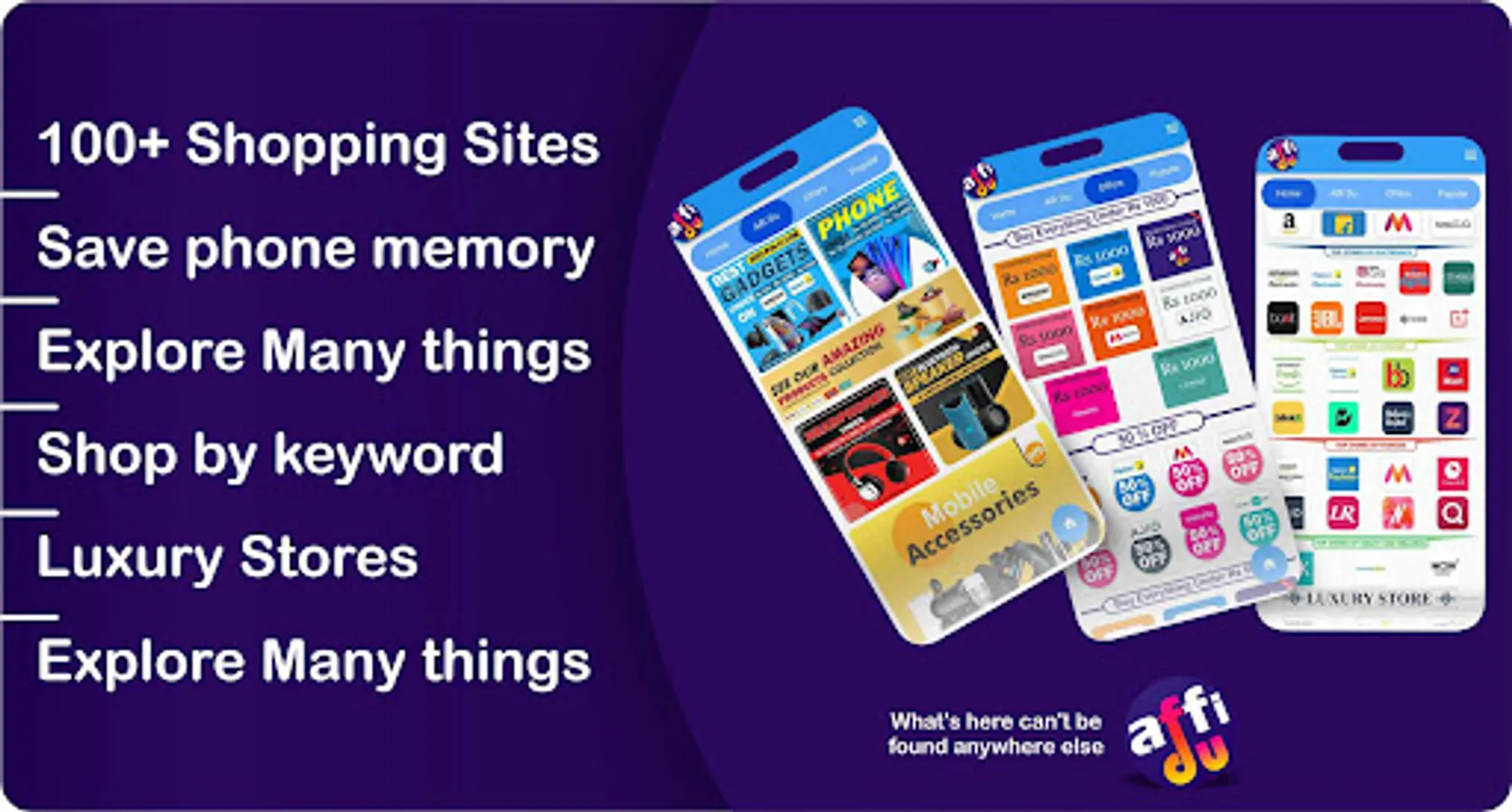 You can access 100+ Shopping sites in affidu like :-