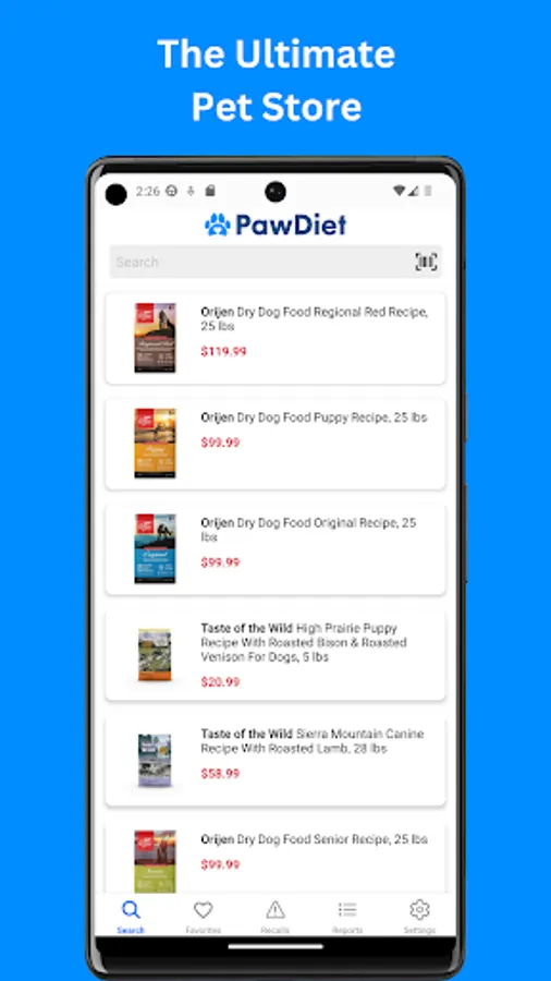 Browse thousands of dog and cat food products, with the ability to lookup products by name or scan barcodes directly from your phone. PawDiet helps you to stay informed about the nutritional content of various pet food products and make the best choices for your pet's optimal health.