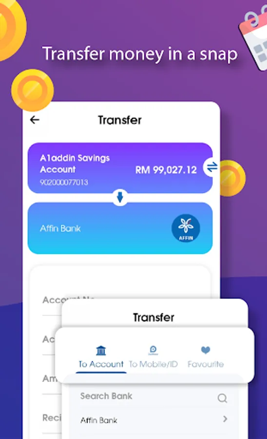 Whether transfer funds to a bank account number, mobile number or ID number, we have you covered. And this can be done instantly.