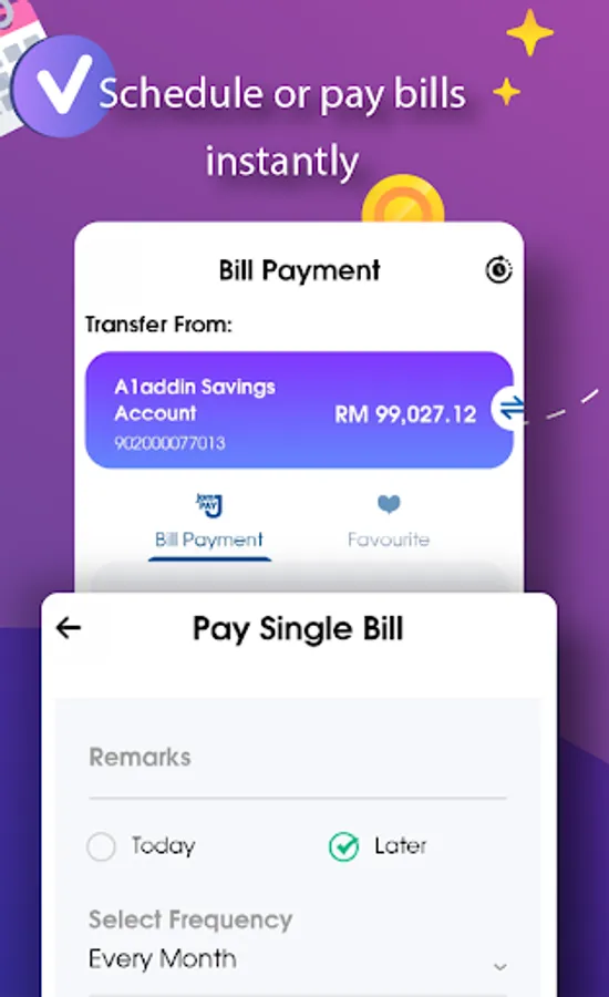 Make payments to your JomPAY billers conveniently. Worried about missing any bill payments? Schedule them with A1addin!