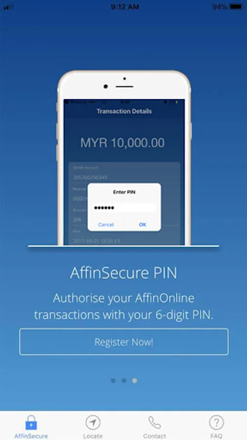 AffinSecure PIN, which is a 6-digit password of your choice will be required to authorise your AffinAlways transactions via AffinSecure mobile app. This is to further protect you against unauthorised access to your account.