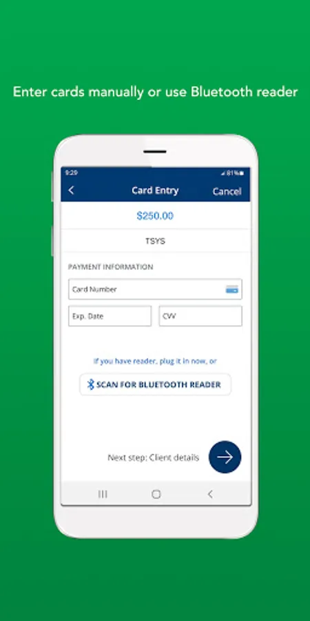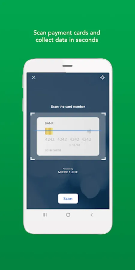 - Use your phone camera to scan payment cards and collect card information in a matter of seconds