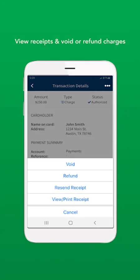 - Void, refund, and view past transactions