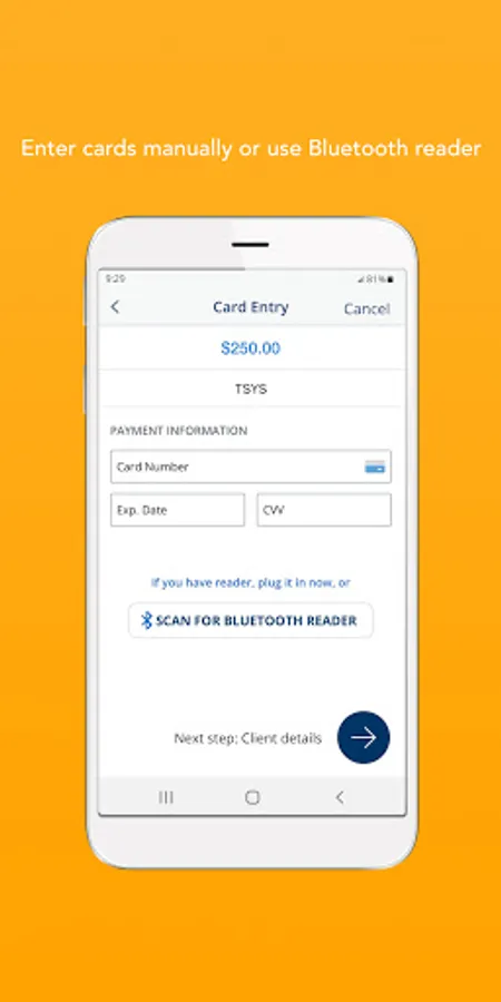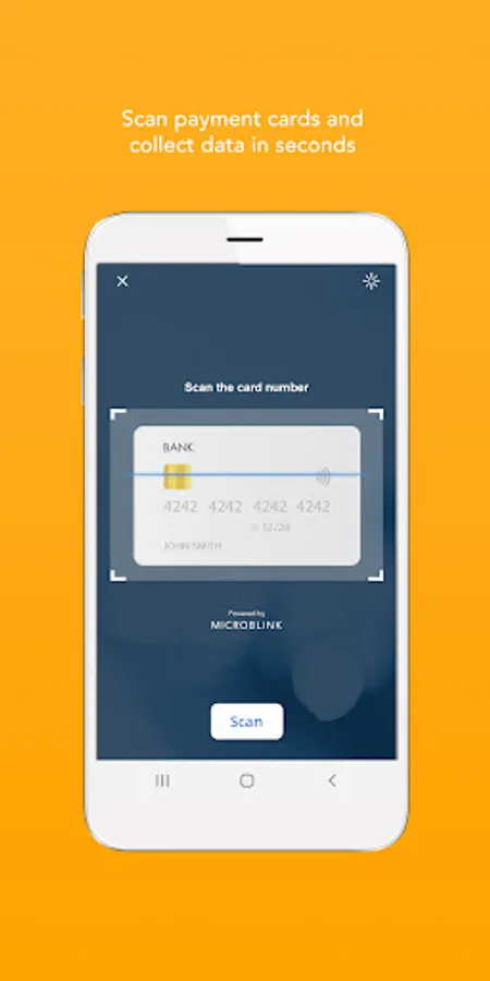 - Use your phone camera to scan payment cards and collect card information in a matter of seconds