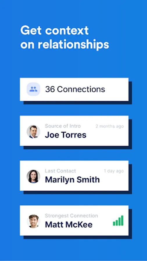 - Get the intro: Map out your team's relationship graph. Discover the entire rolodex of prospects your investors and advisors are connected to and unearth valuable introductions