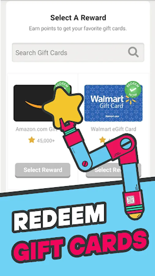 - Earn gift cards when you redeem your rewards points.