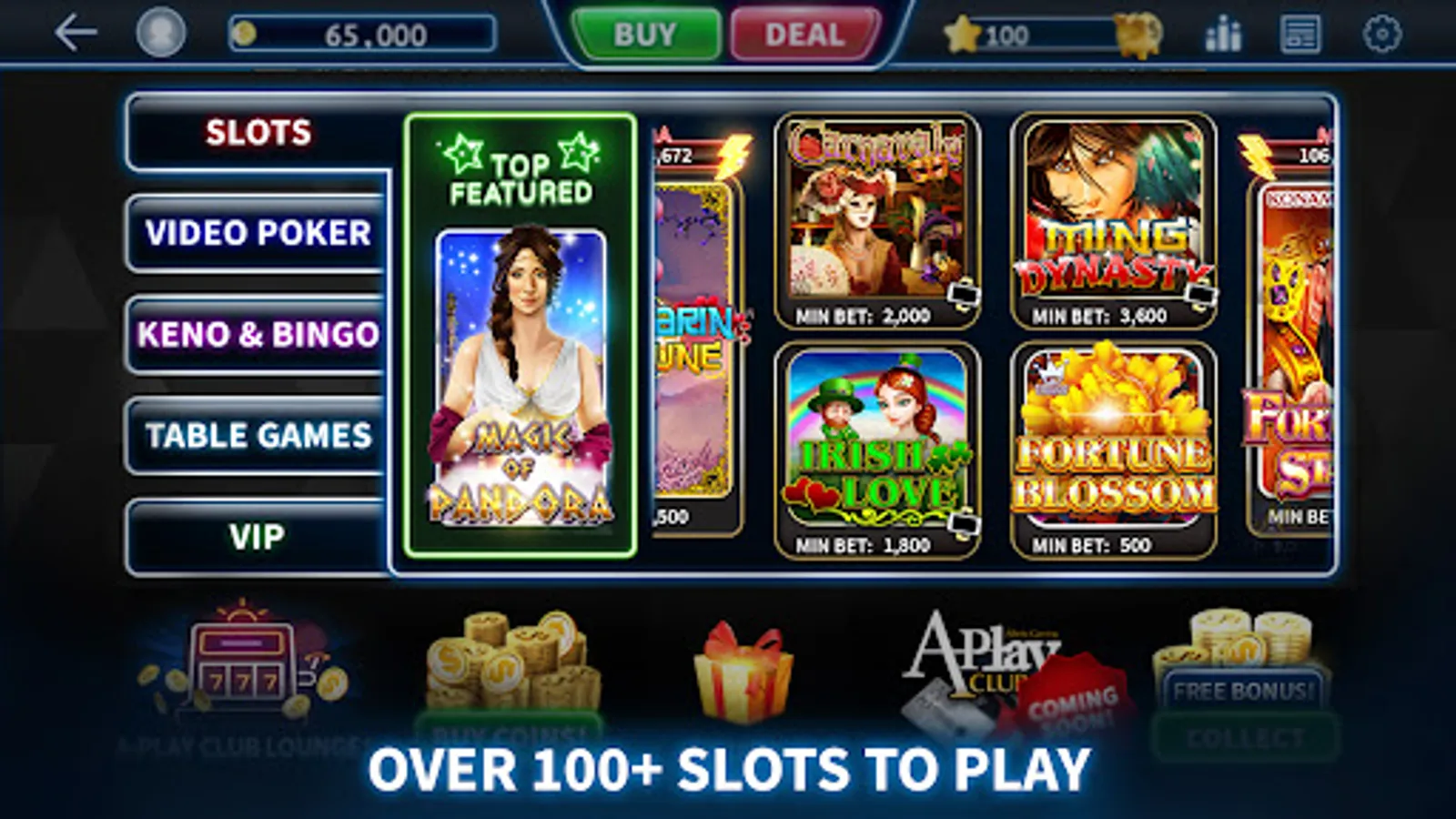 Download the all new A-Play Online today and receive a HUGE COIN welcome bonus, not to mention our daily and bi-hourly COIN bonuses. Download today and start experiencing all of the fun of a Las Vegas casino in the palm of your hand!