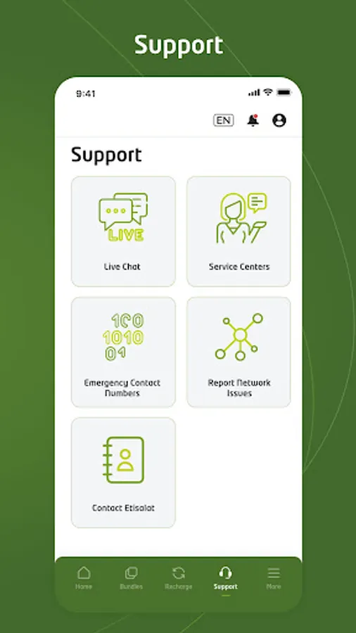 Tap into the convenience of Etisalat services and get things done online with My Etisalat App. Download our app today on your android device and buy phone numbers online (prepaid & postpaid SIM cards), access premium internet packages deals, purchase minutes bundles & data bundles, activate SMS packages, build your bundles, check available balance, track data usage, manage your friends' and family's accounts, and much more.