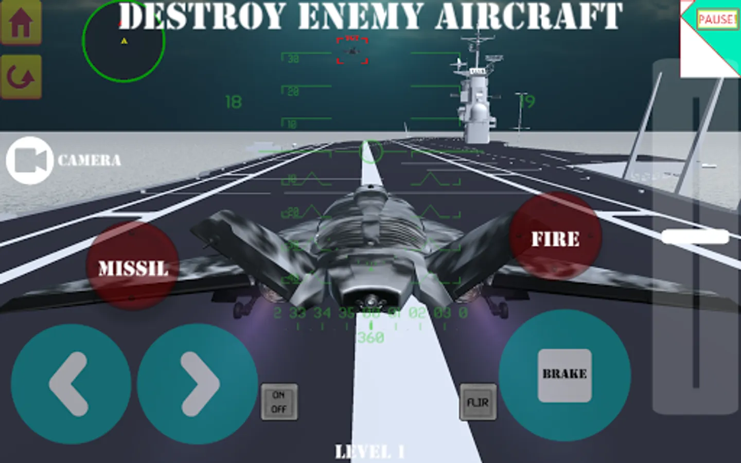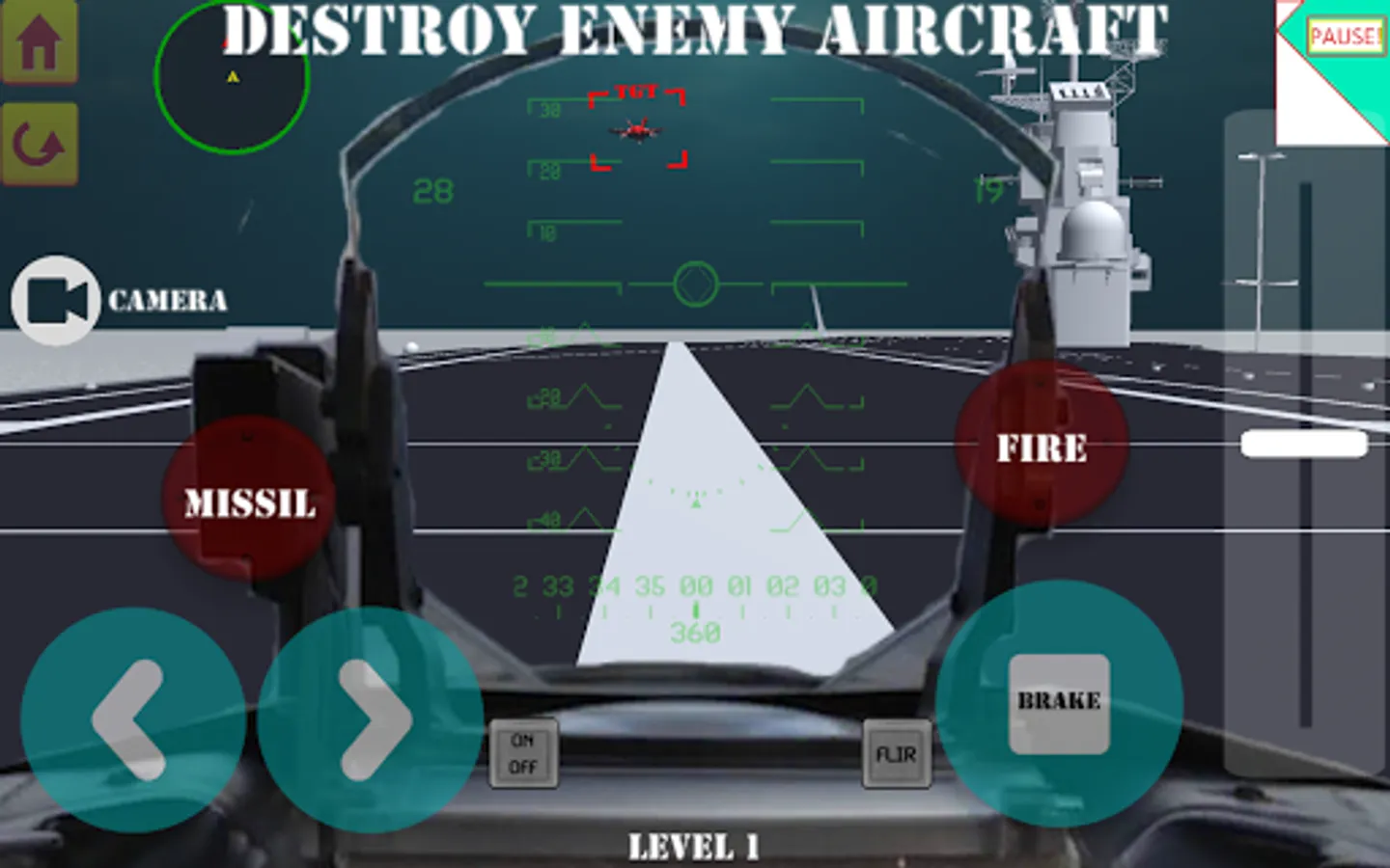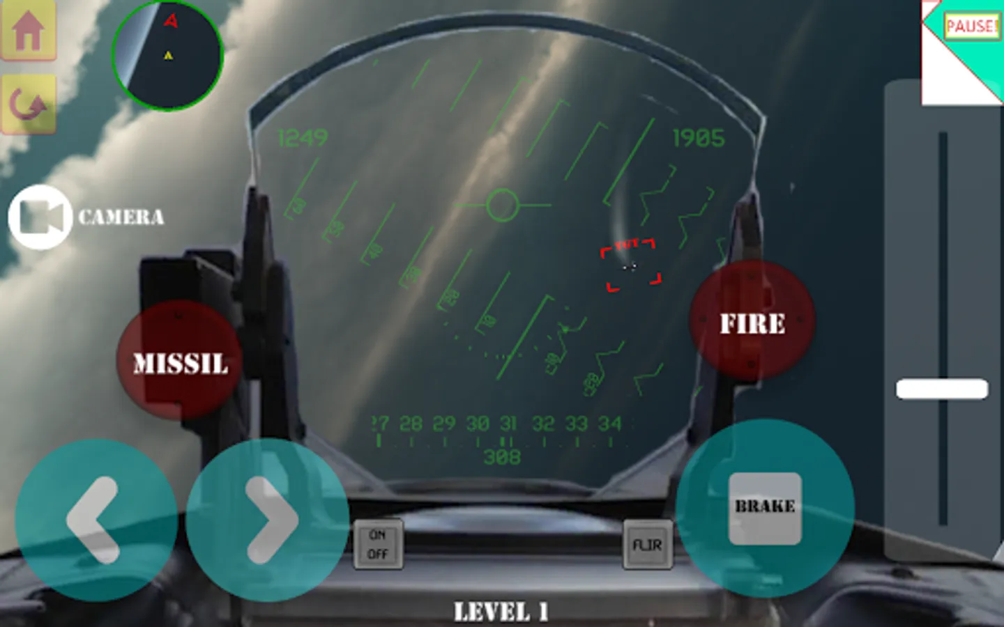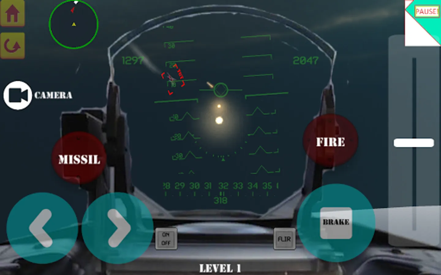 Destroy your enemies with machine guns and missiles. To complete the mission, you'll have to chase and destroy the jet that has a radar with a bep and a flashing red light. When destroyed, golden rings will appear for you to collect.
