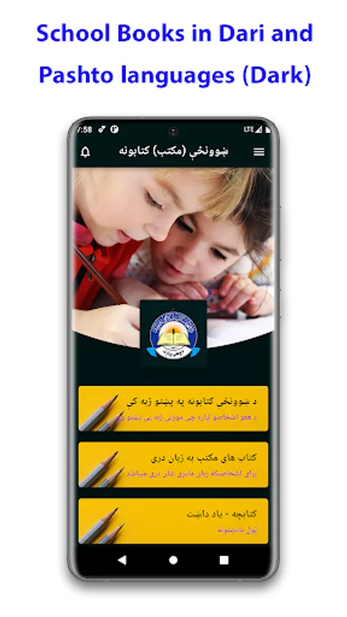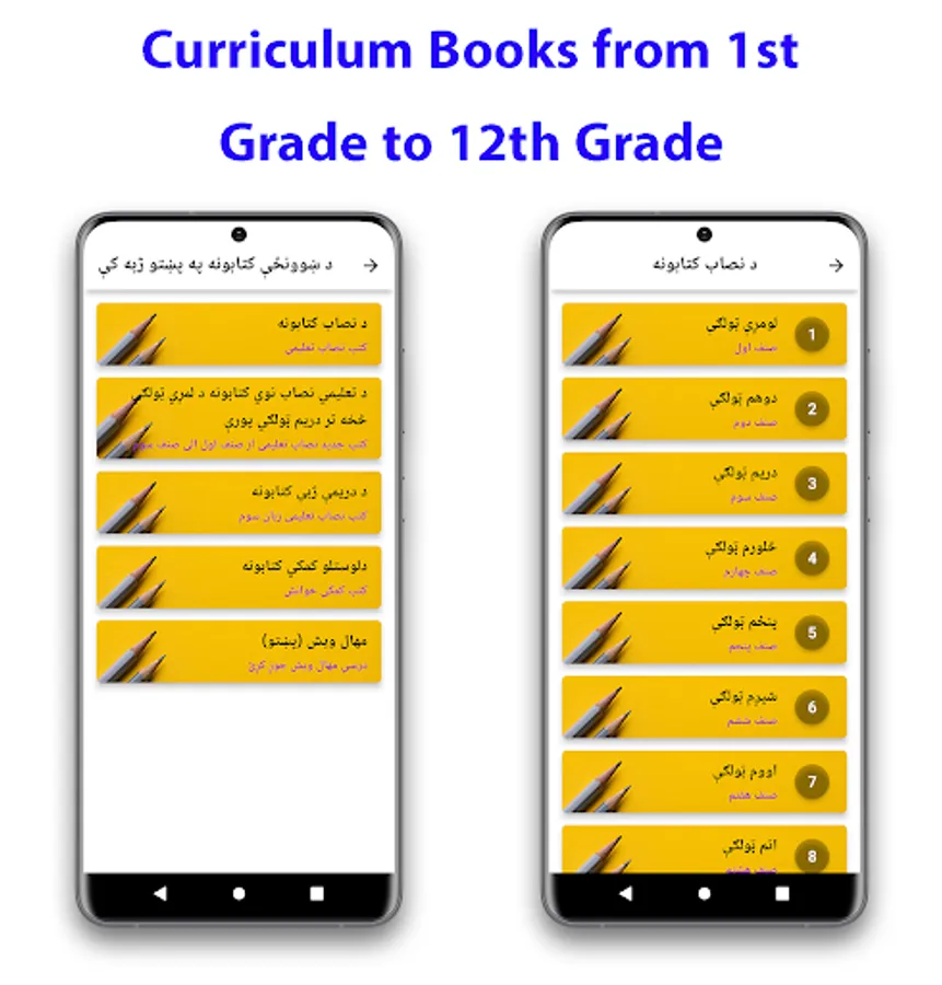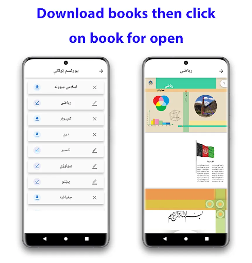 ● School Books (ښوونځې کتابونه ، کتابهای مکتب) App is allow you to download and read Ministry of Education of Afghanistan school's curriculum books easy and fast. This Android App allows you to download all grades (1st grade up to 12th grade) textbooks with minimum size at once and can access back these books by opening Afghan School Library App without connected with Internet but first you need to download your grade’s books and then use offline as many times you want.