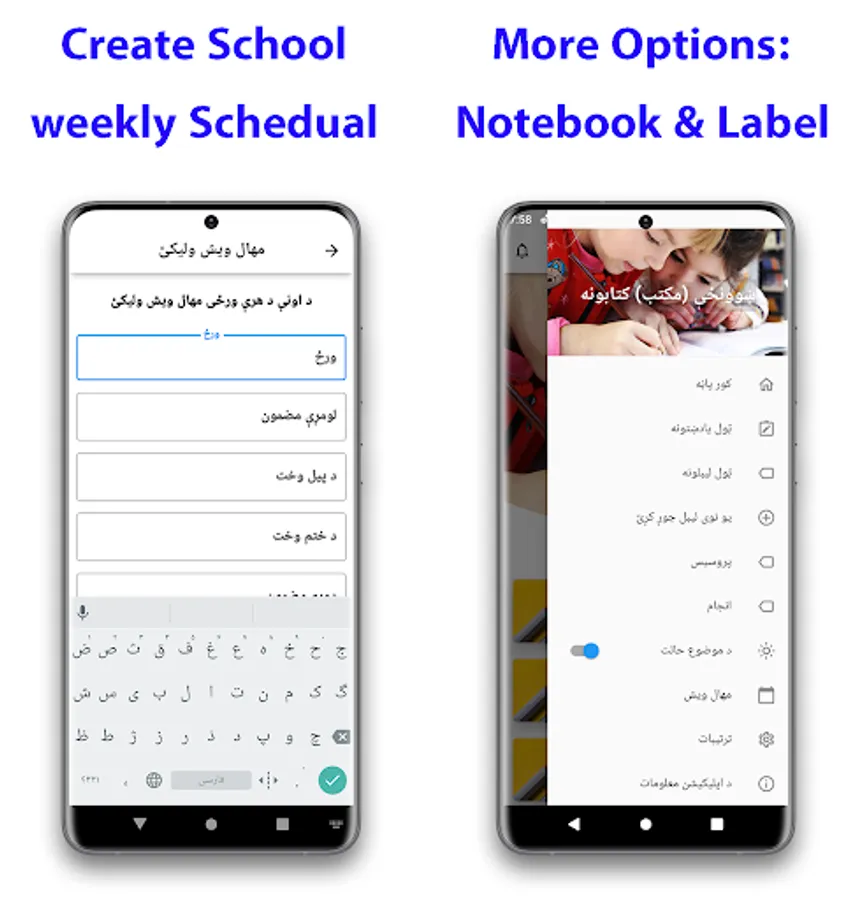 ● په دې اپلیکیشن کې د ښوونځي د یاد دښتونو کتابچه کې خپل یادښتونه ثتب کړئ او وګورئ