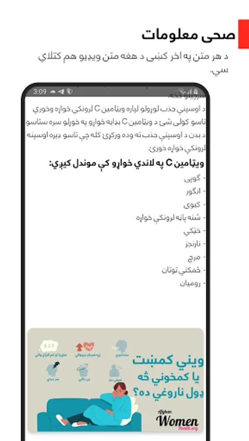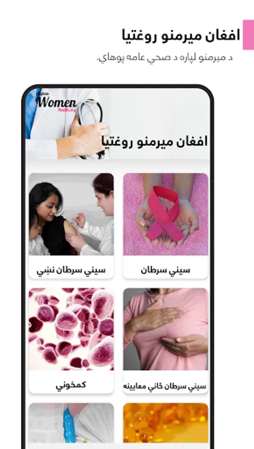 افغان د میرمنو روغتیا و افغان میرمنو ته د صحت او روغتیا په اړه عامه پوهاوي او معلومات رسوي.