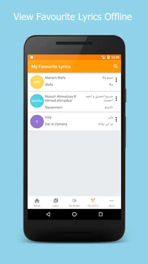 ★ Add any Artist to Favourites, where all artist's lyrics will become available for offline viewing.