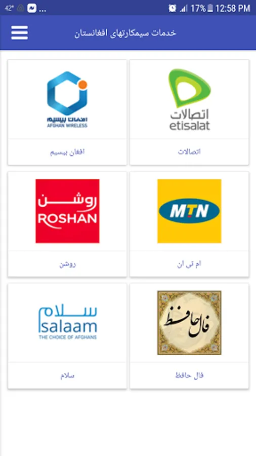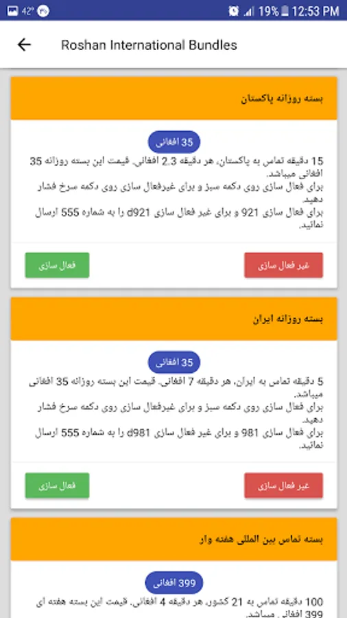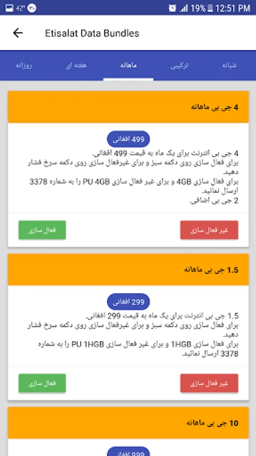 If you want to use internet packages and calls and messages provided by Afghan telecommunication companies and use them on your mobile phone, then install this application on your mobile phone. Information on how to activate services and packages provided by all companies, including Afghan Wireless, Etisalat, Roshan, MTN and Salam is available in this application.