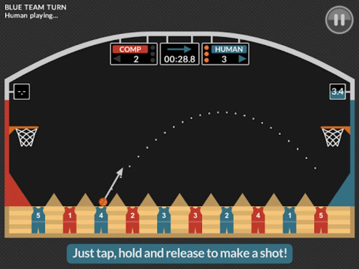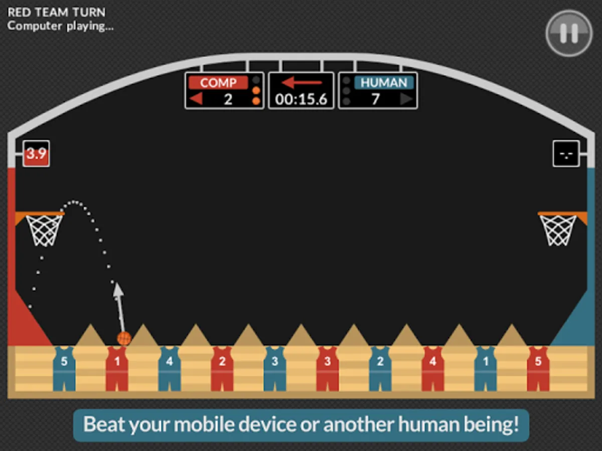 Play a mini table basketball game like never before with this innovative spring shot machine! Test your skills against your mobile device or other real live opponents. Improve your basketball shooting technique in single player practice mode.