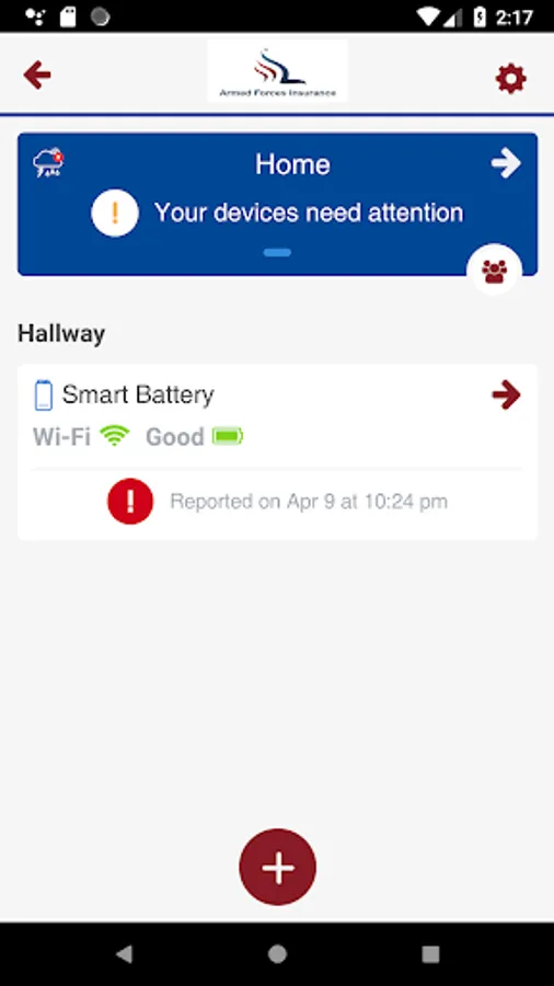 Armed Forces Ins Protect app keeps you in contact with your insurance company and it provides features to setup your smart sensor.