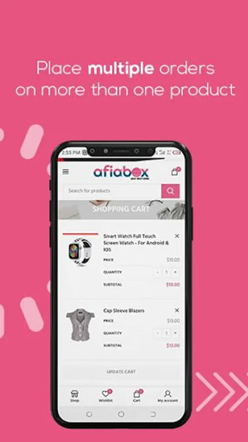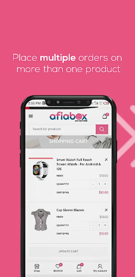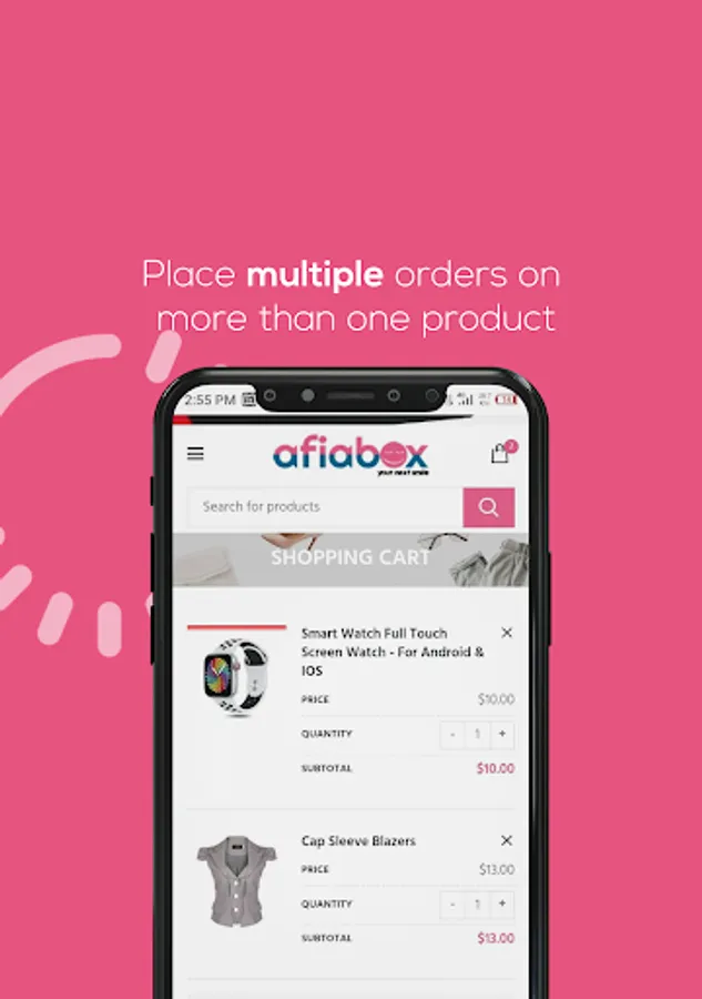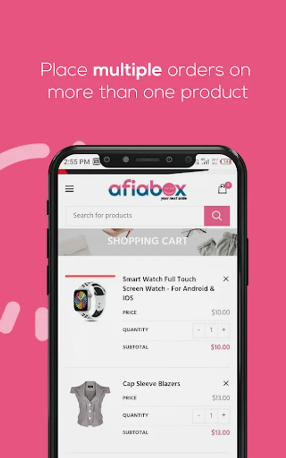By downloading the Afiabox online shopping app on your Android phone or tablet, you can effortlessly browse our massive collection of products from different categories including mobile phones, electronic devices, accessories, consumer goods etc