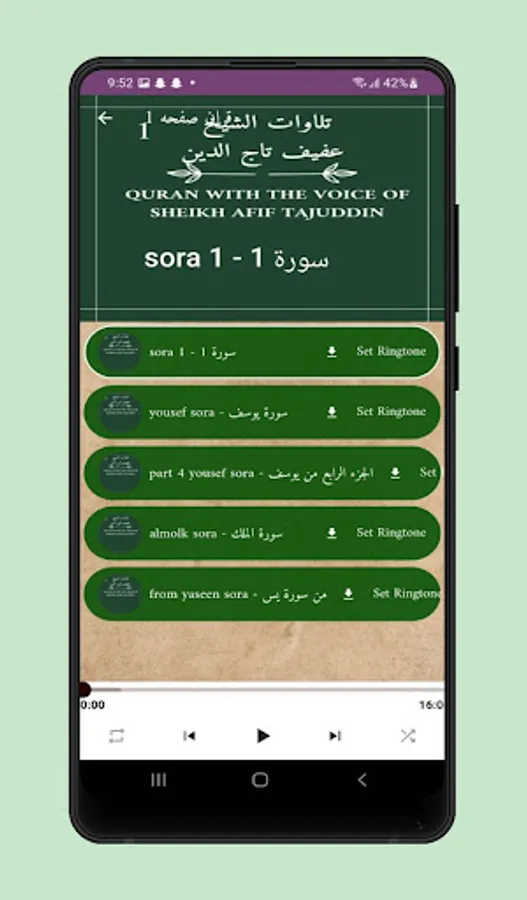 do you want a good quran app with a clear sound recorded by afif mohammed taj quran ?
