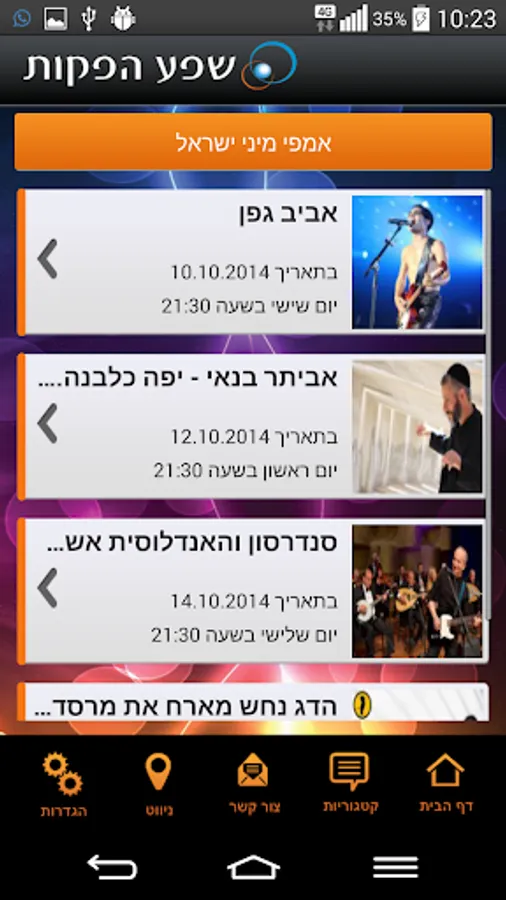 Producing plenty - old ticket office Baflkitzih innovative displays the range of performances in Israel and South in particular, stand-up performances, artistic performances, children's shows and football tickets for Hapoel Be'er Sheva. The application can be detected through the event, to purchase tickets and embed a calendar event, and of course to navigate for tickets at the box office abundance productions. Good time.