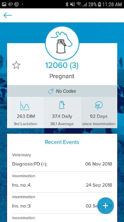 • Additional actions: Dry, Inseminate, or Calve an animal