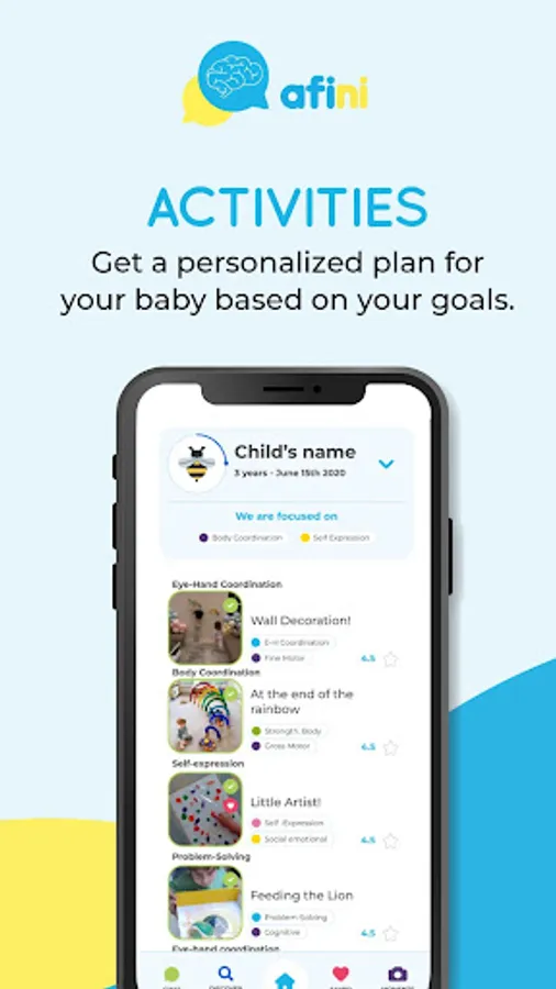 Afini app is your personal virtual tutor, offering ideas for play activities, tips, and valuable information for families with babies aged 0 to 8 years old. It helps you create meaningful moments, support your child's development, and build lasting memories.
