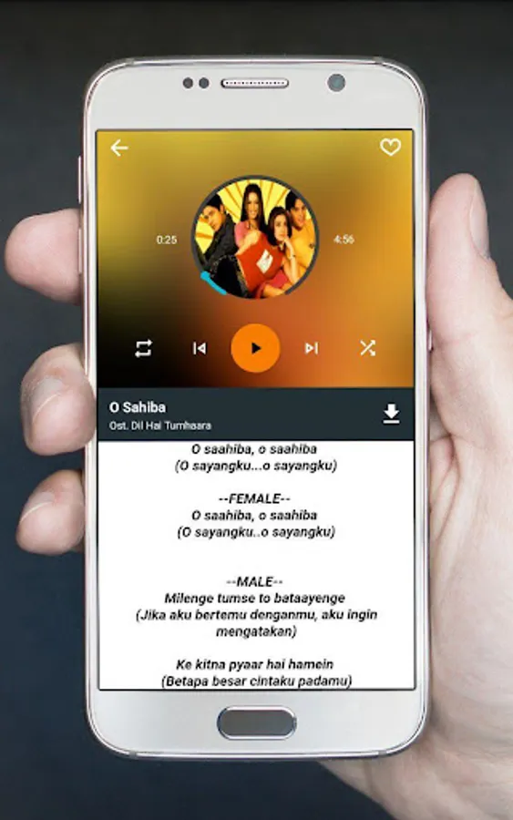 This application is an MP3 Music Player that contains a collection of Dil Hai Tumhaara Offline songs accompanied by song lyrics and translations.