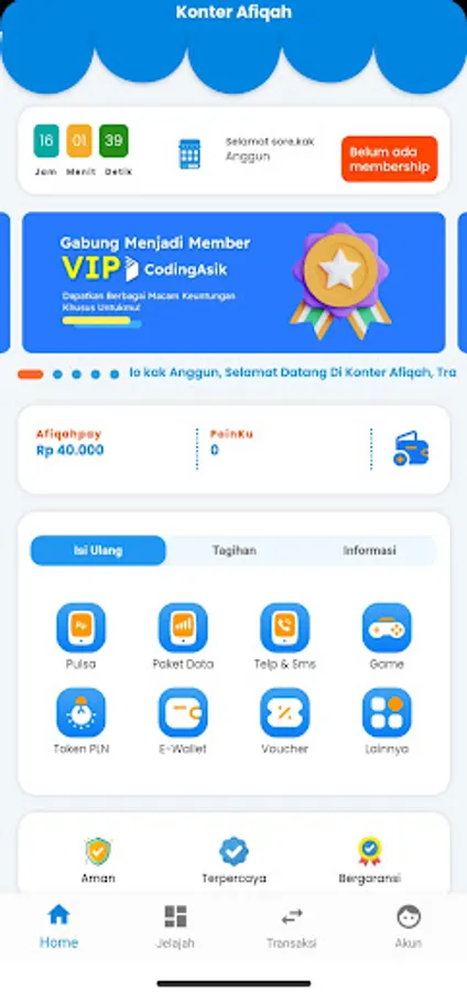 The Afiqah Counter is an application that is used for topping up credit, purchasing electricity tokens, paying electricity bills, PDAM bills and many others. The Afiqah counter is made to make it easier for consumers when topping up credit and electricity tokens. The Afiqah Counter also opens Agents or Resellers to sell Credit at the lowest prices and get additional income of up to millions of rupiah.
