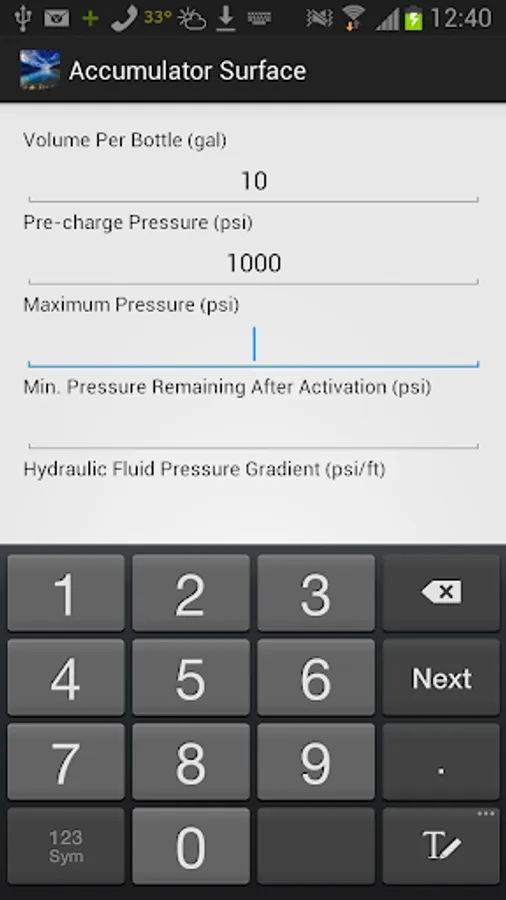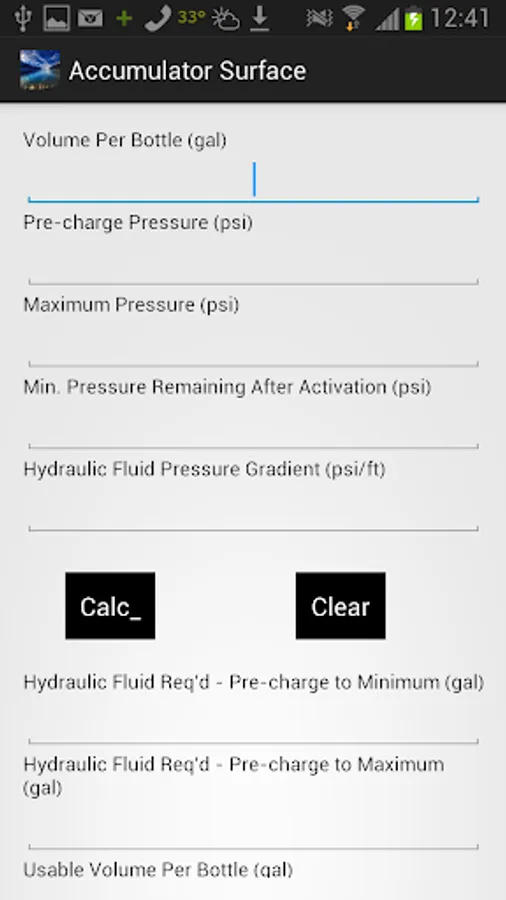 This Surface Accumulator calculator will assist you with calculations for usable volumes per bottle by applying Boyles Gas law.