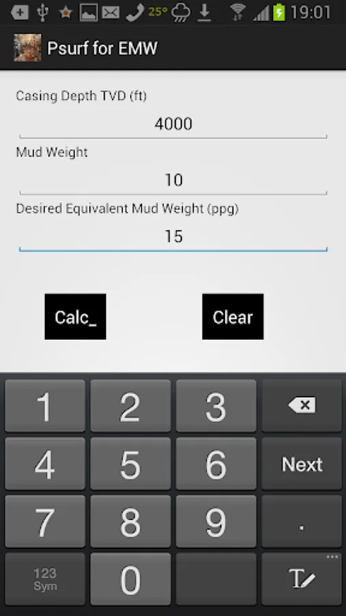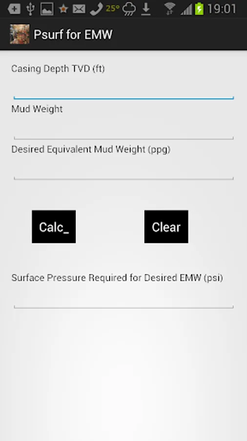 This calculation gives you the required surface pressure for a given depth and fluid weight. For example - the drilling program called for the formation at the casing shoe to be tested to an equivalent mud weight of 15 ppg with an existing 10 ppg mud.