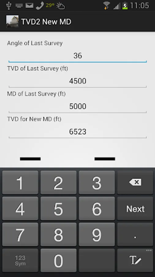 This little app is the second part to the initial TVD app put up in the Play Store. This takes input to find the new Measured Depth value whereas the initial TVD calculator gives the New TVD.