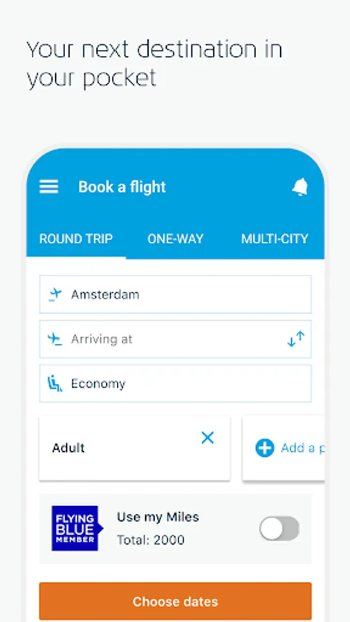 Check your Miles balance, book a reward ticket, modify your profile, or access your digital Flying Blue card in your personal dashboard.