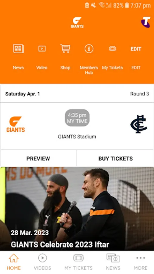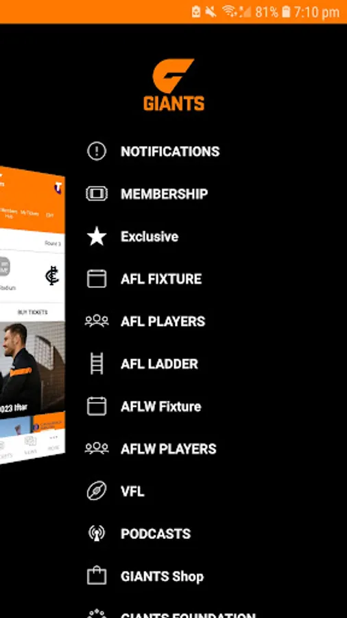 - My Club section with access to exclusive features for club members and My GIANTS Account holders