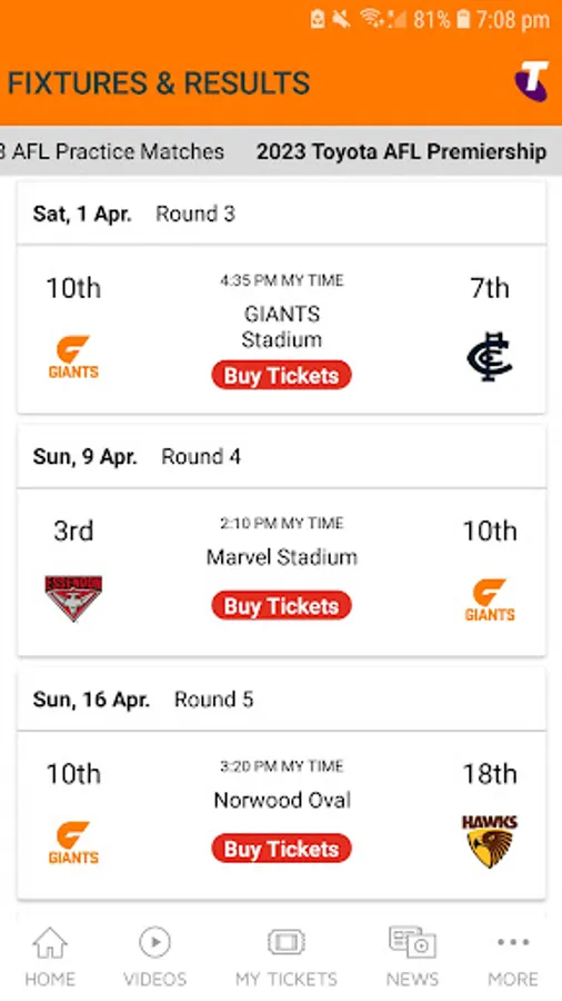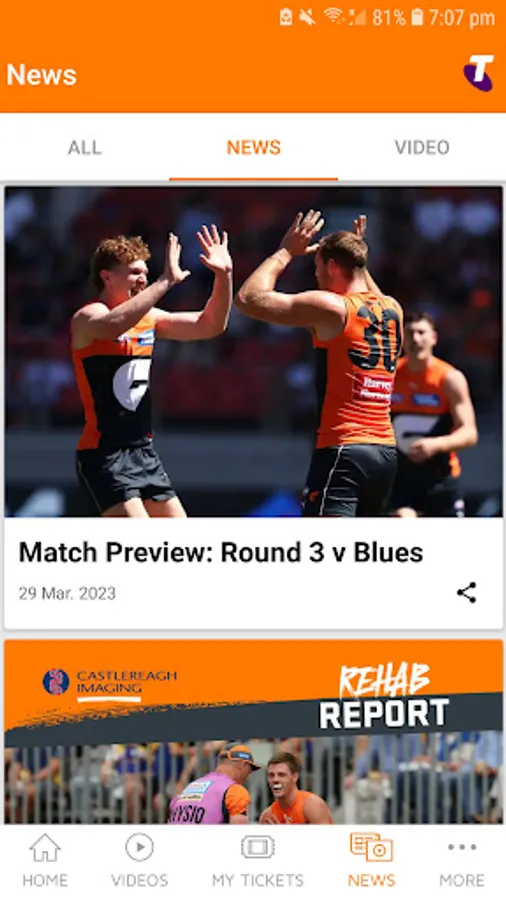 - Match Centre, including new team and player stats, and in-game video highlights