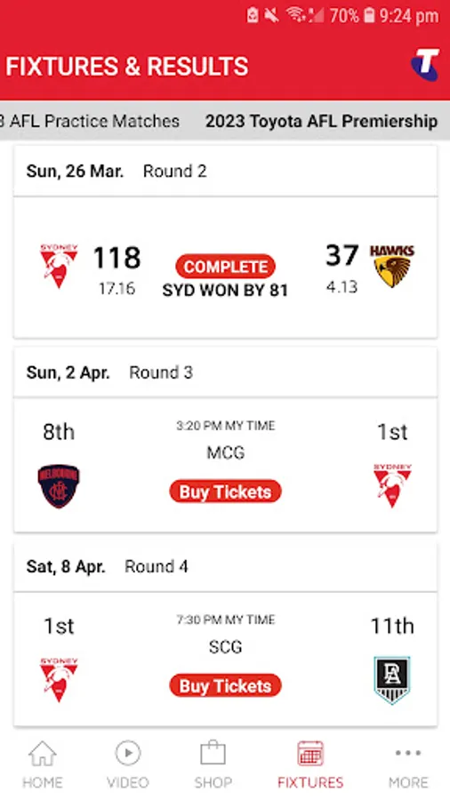 The Sydney Swans Official App is your one stop shop for all your latest team News, Videos, Player Profiles, Scores and Stats delivered LIVE to your smartphone or tablet!