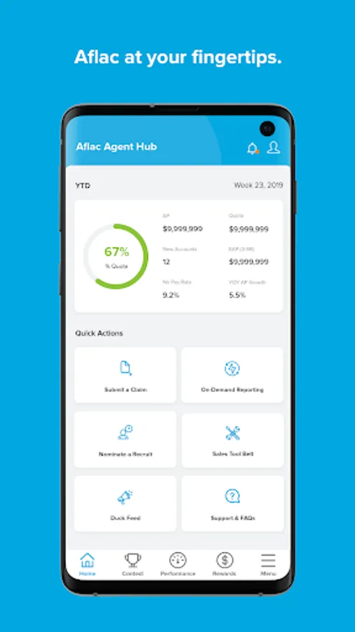 Agent Hub is a selling, servicing and coaching tool created exclusively for Aflac agents, coordinators and market offices. From contest and performance tracking on easy-to-read dashboards to e-signature-enabled claims functionality, Agent Hub gives busy producers access to a host of tools to run their business on the go. Crafted with input from the Aflac field force, Agent Hub is a mobile one-stop-shop that is constantly adding new features to better serve the needs of Aflac producers and policyholders.