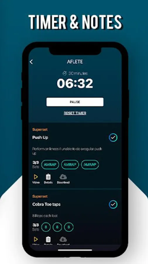 -Each workout has a timer, list of exercises complete with how many sets, reps, time and notes from the influencer or athlete. There are videos for each exercise to make sure you perform the right technique