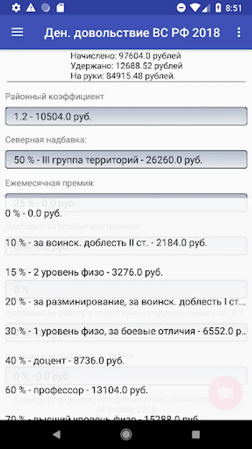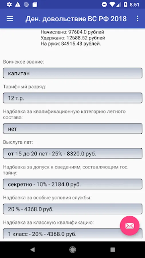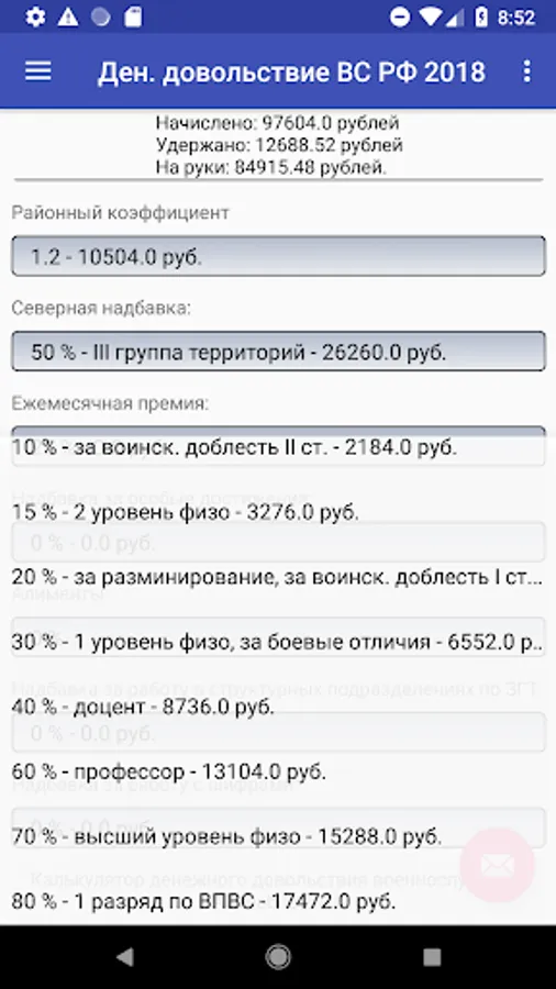 Calculator of monetary allowance and pension for the length of service of the military personnel of the Armed Forces of the Russian Federation according to salaries in 2022 with a choice. Full version without ads.