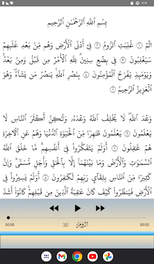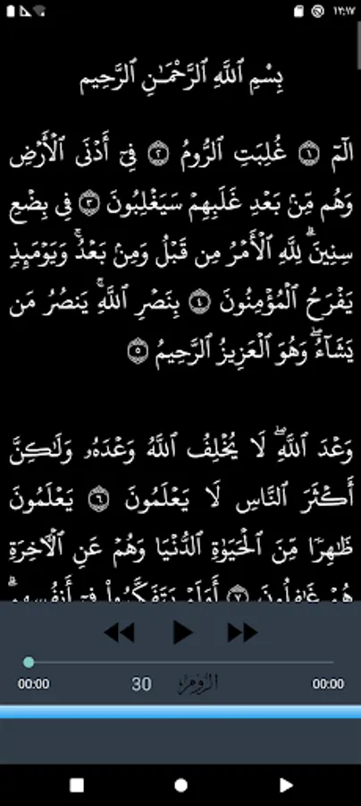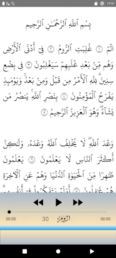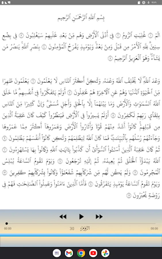 The application of the Holy Quran, Educational Tajweed, the third volume, from Surat Al-Rum to Surat Al-Nas, voice and image with the voice of Sheikh Abdulbasit Abd al-Samad at your fingertips (the conclusion is written in full in the Ottoman script according to the Holy Qur’an of Medina). The application works perfectly without connecting to the network after downloading and does not require downloading any other files or surahs because the Qur’an bears the full sound and image from the beginning.