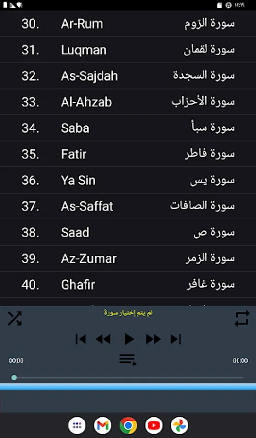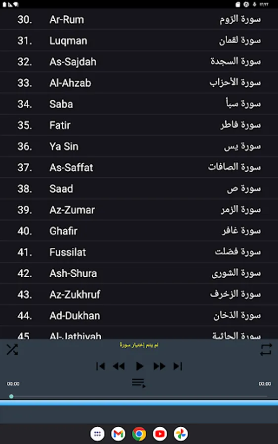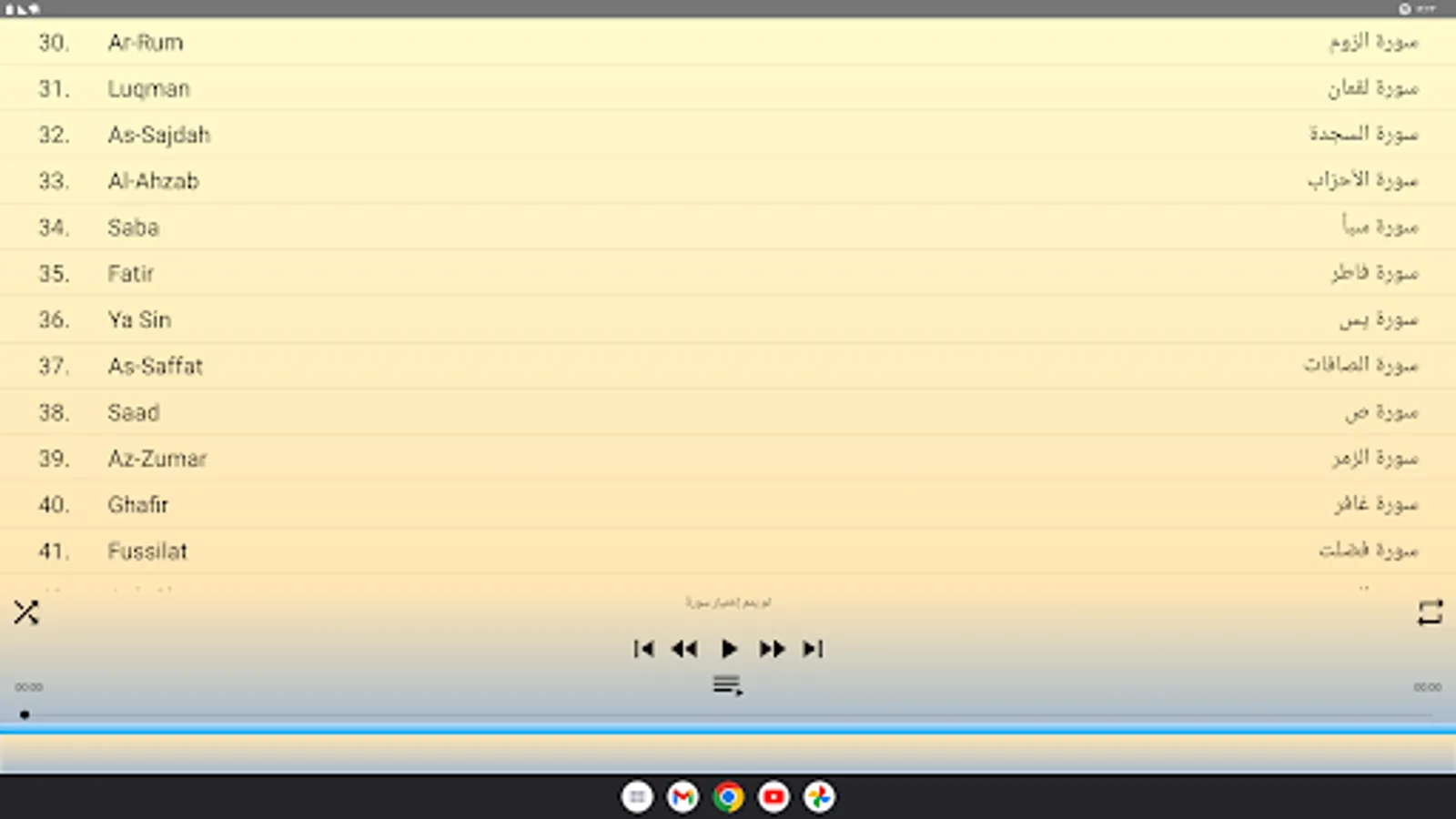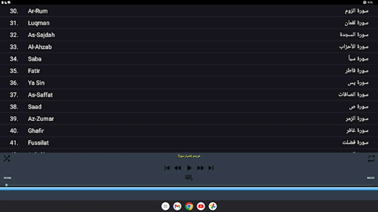 - Listening and browsing the Qur'an (reading and listening to the recitation of the Qur'an) at the same time on the same page.