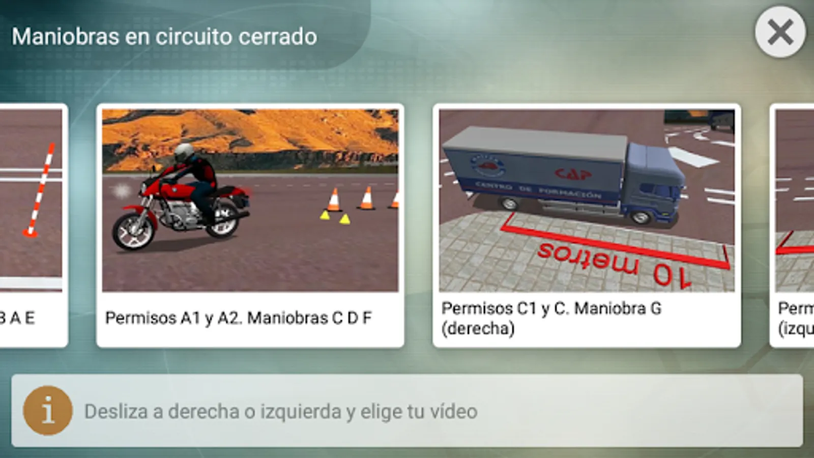 . 3D animations area with major maneuvers for different permits closed circuit.