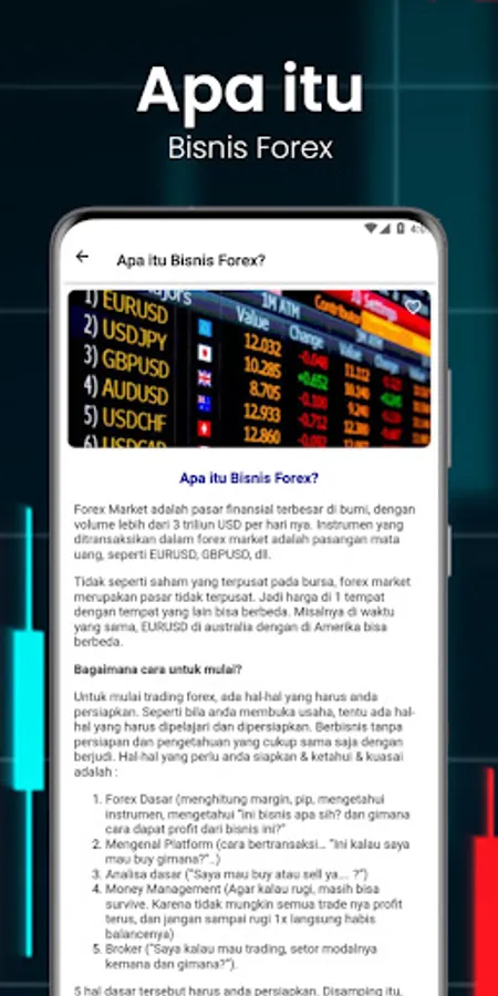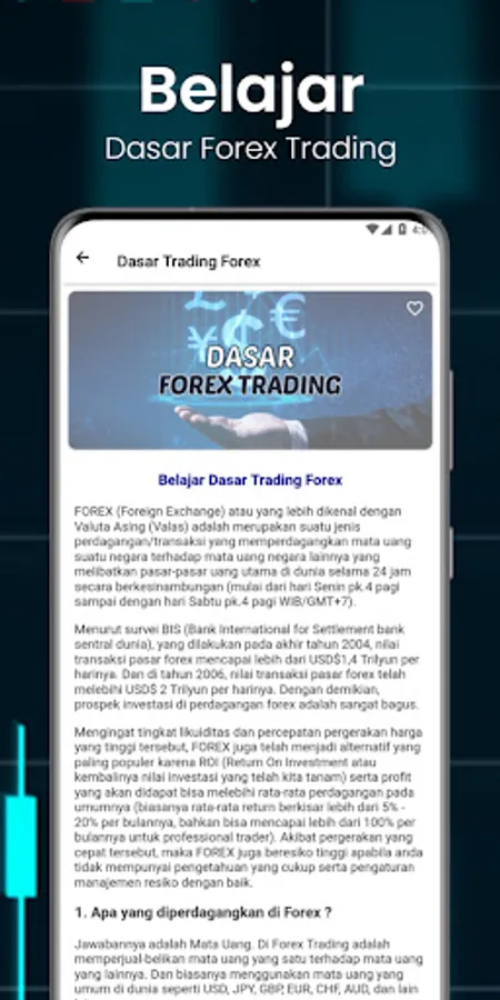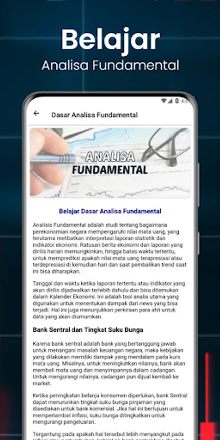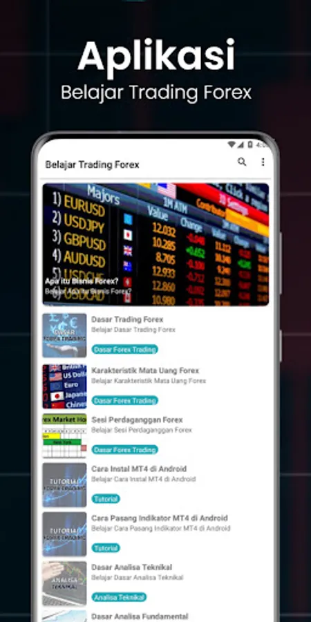 Forex Trading Learning Application For Beginners. The content of the material in the application is quite complete besides the application being small, lightweight and very easy to use.