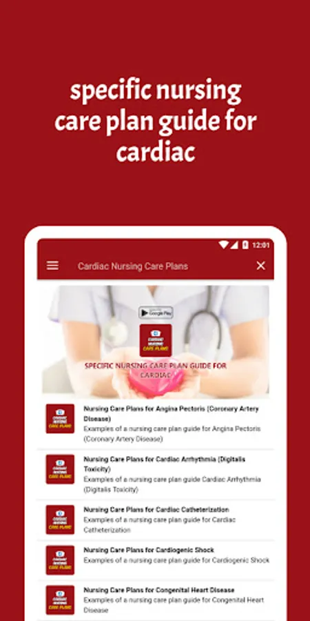 Application created with the best design to facilitate navigation and user experience. Hopefully it will be useful and can be a guide in learning matters relating to Cardiac Nursing Care Plans