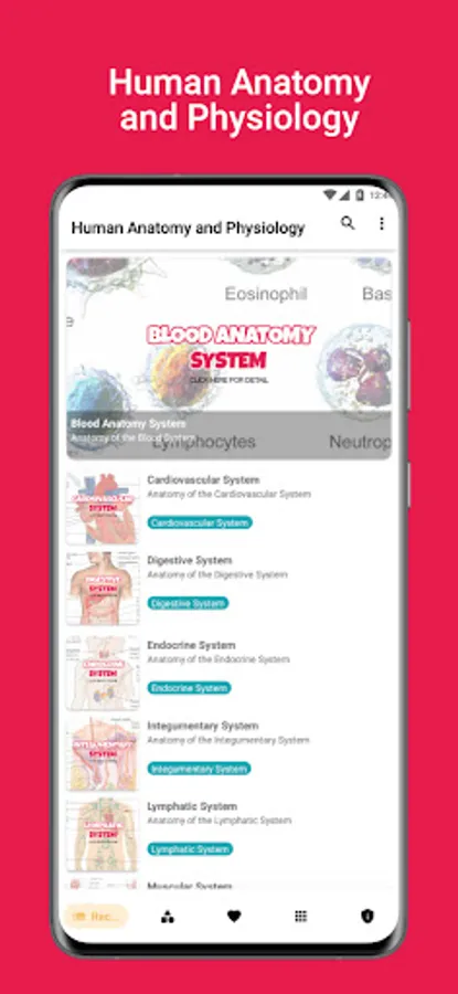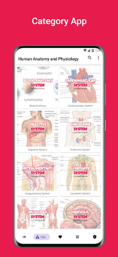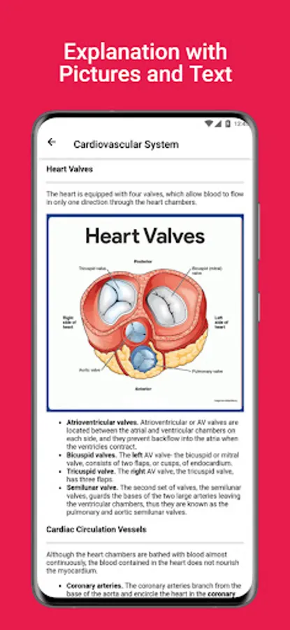 This application discusses Human Anatomy and Physiology in detail, including the anatomy organs of the human body and the anatomy of the human body system, equipped with illustrated images and detailed explanations.