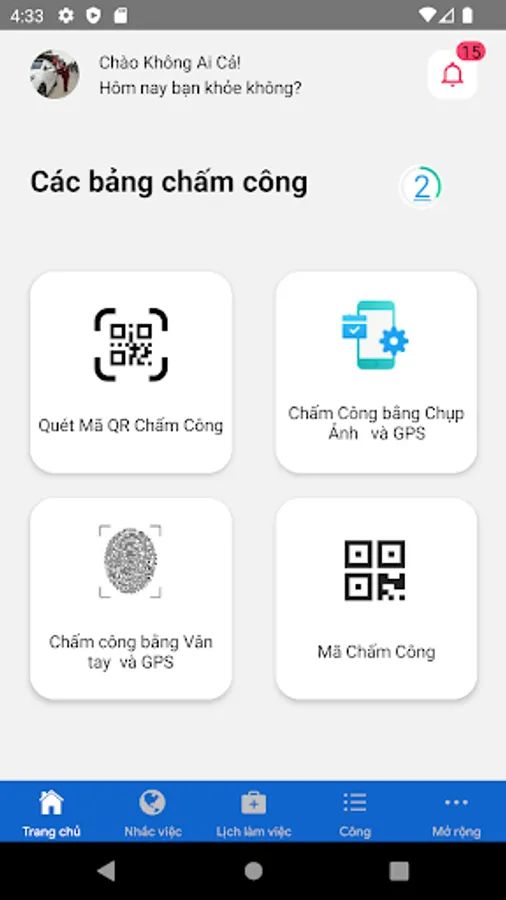 - The application allows users to time clock and control work. Users can flexibly choose many forms of timekeeping such as timekeeping by QR code scanning, timekeeping by fingerprint, timekeeping by image with GPS positioning.