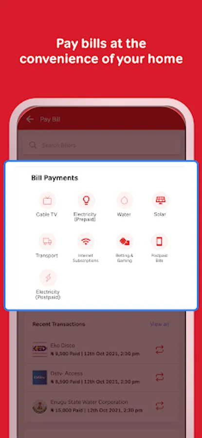 Pay Electric, Water, Cable TV, Solar, Transport, Postpaid Bills & much more at the convenience of your home.