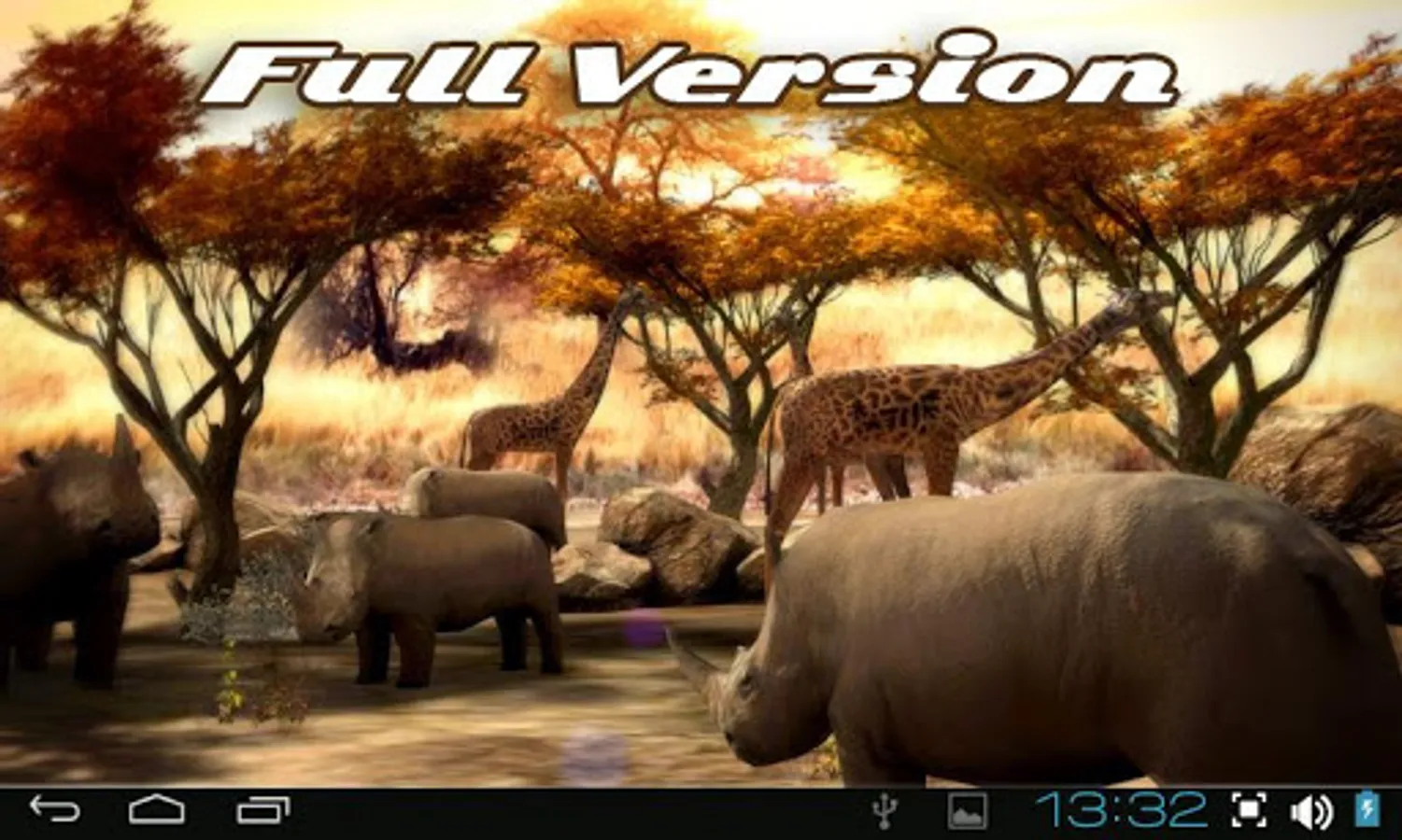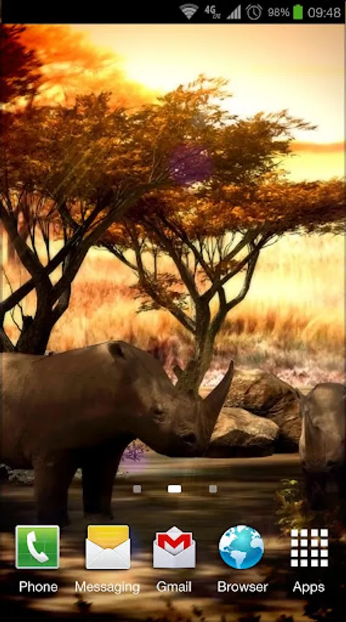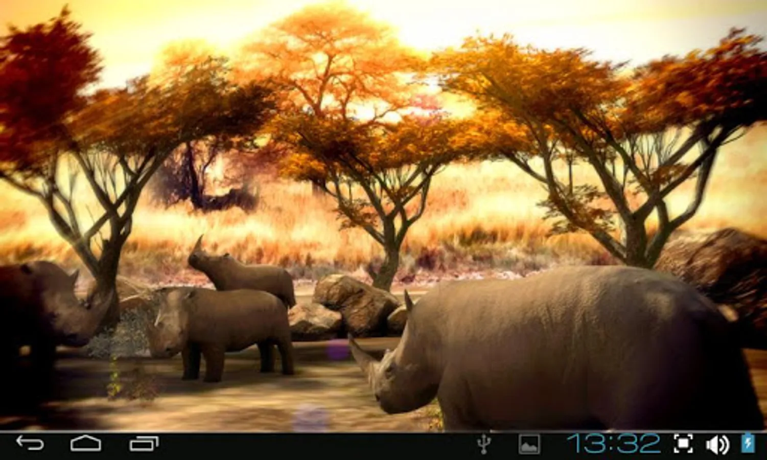 Free version of the most beautiful African nature 3D live wallpaper on Google Play for your phone or tablet! Absolutely realistic African savanna environment inhabited by rhinos will bring alive your phone screen! Rhinos are animated and look totally real! This theme will give a lot of warm moments even in cold rainy days!